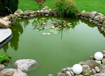 FEATURE OF POND CAN BECOME ITS UNUSUAL SHAPE, CLEVERLY FOLDED ARTIFICIAL WATERFALL, BEAUTIFUL FOUNTAIN, OR DECORATIVE LIGHTING.